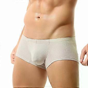 Men's Boxy Underwear Ribbed Ice Silk Comfort Mesh Breath Quick Drying Cool Feel Trunks Youth Sexy Low Waist U Convex Pouch Trunk