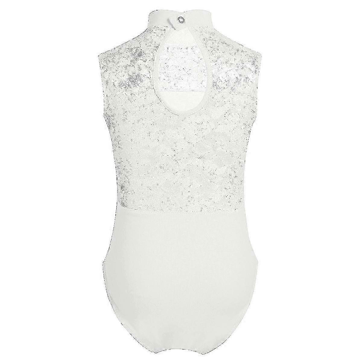 Kids Girls Ballet Dance Gymnastics Leotard Lace Turtle Neck Lace Back Sleeveless
