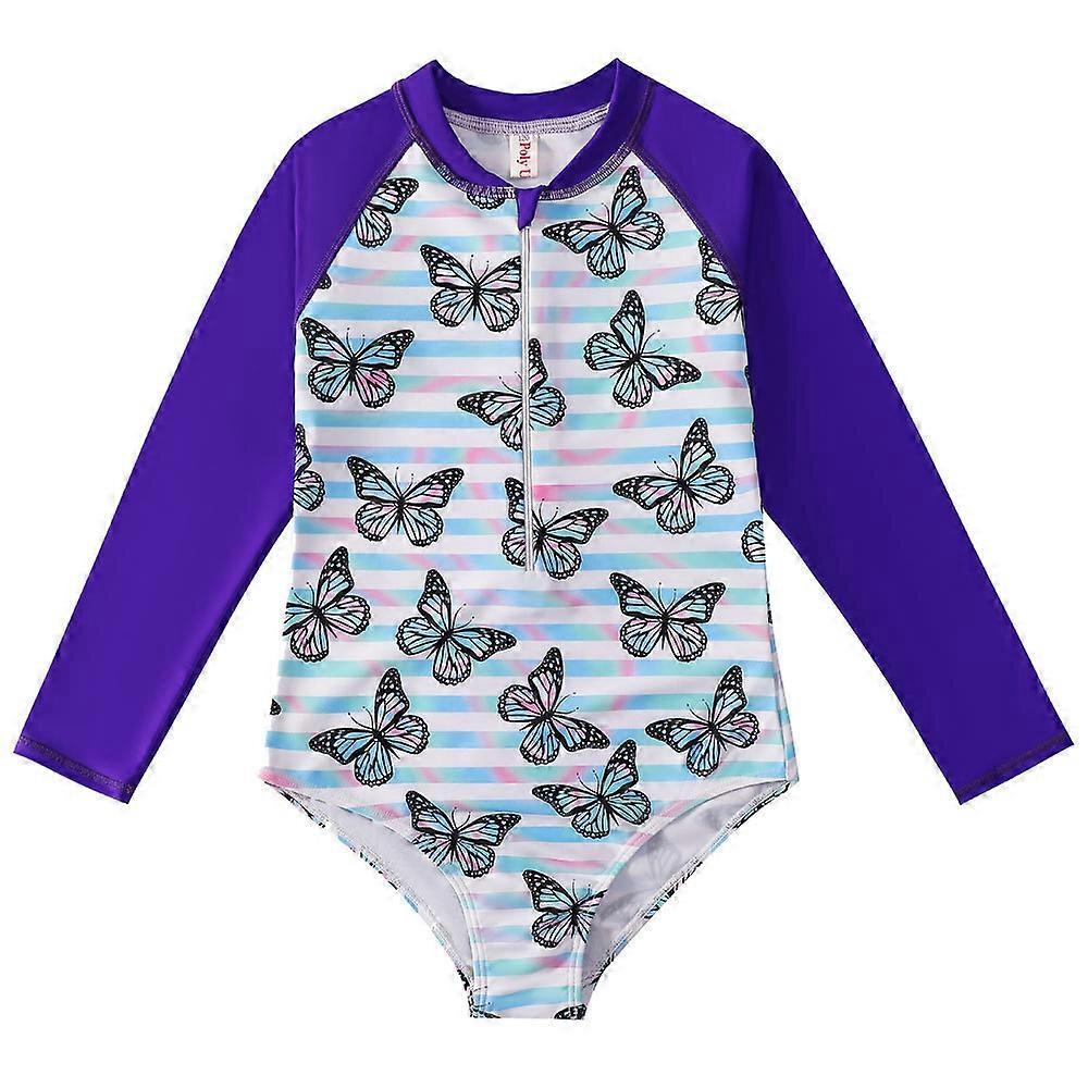 Children's One Piece Swimsuit, Cartoon Girls Swimsuit, Zipper Long Sleeve Swimsuit