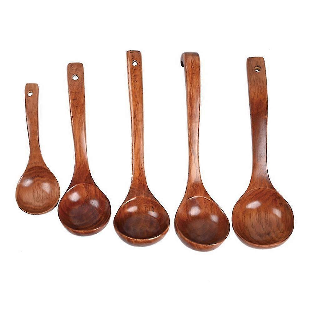 Wooden Spoons, 5pcs Wooden Soup Ladle Natural Wood Soup Spoon Porridge Spoon For Kitchen Restaurant