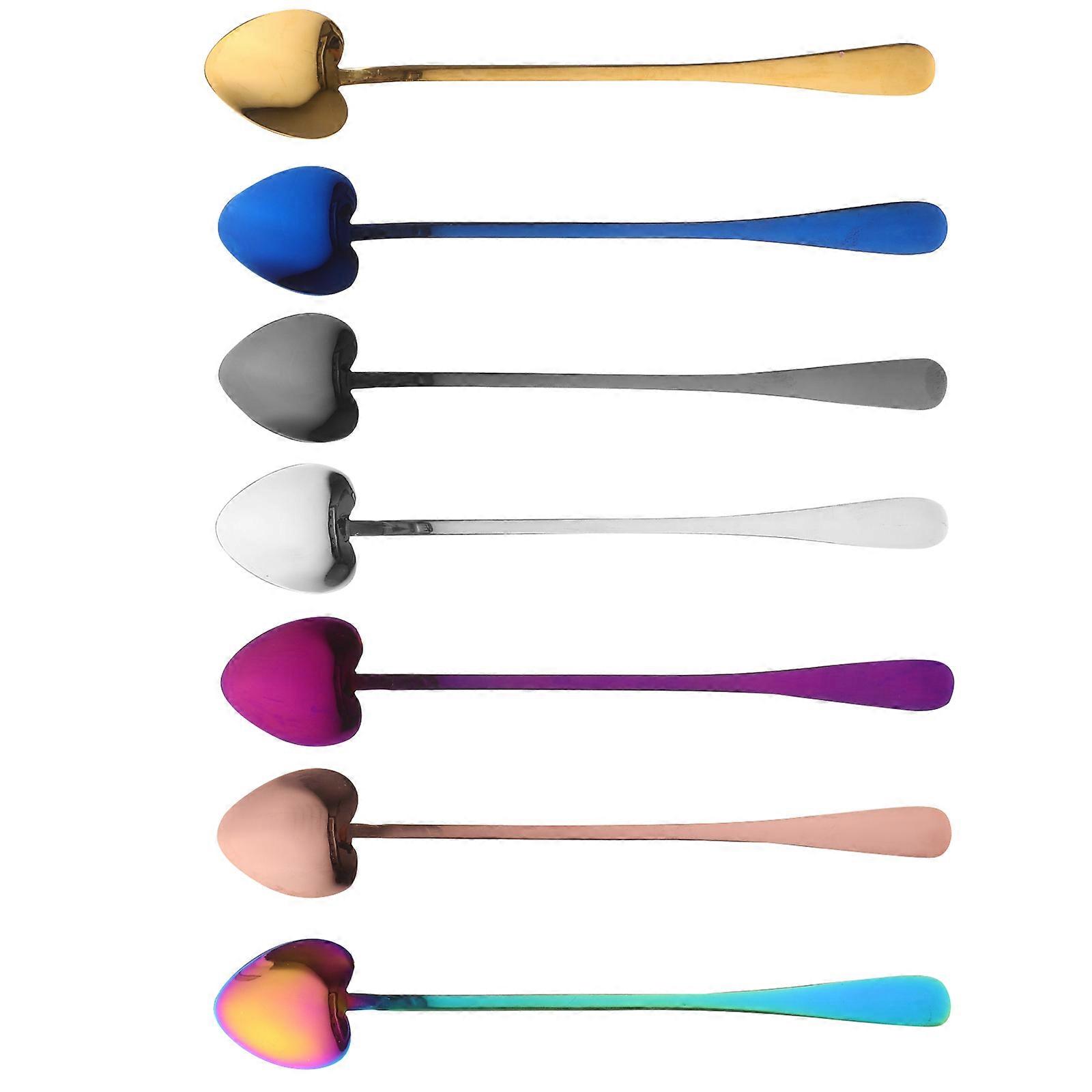 Metal Spoons Heart Shaped Latte Spoon Multifunctional Coffee Time Gold 7Pcs