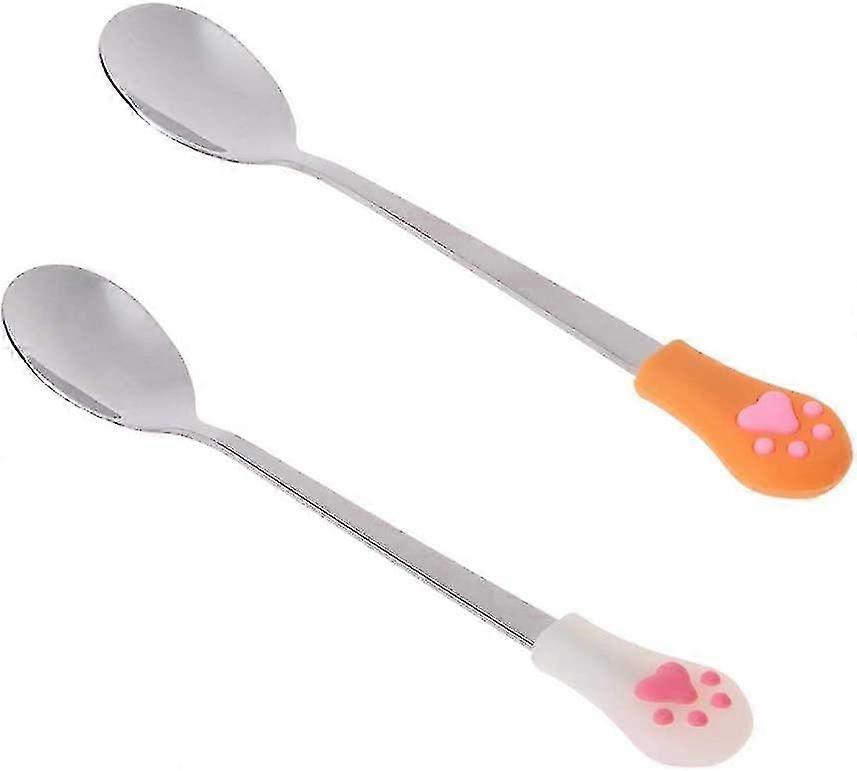 Orange and White Stainless Steel Spoons with Silicone Handles for Pet Cat Feeding and Canned Pet Milk Powder