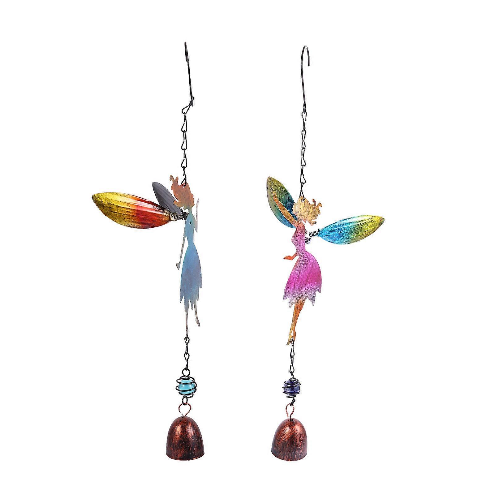 Colorful Angel Glass Wind Chimes 2PCS Hanging Decor for Outdoor Spaces Charming Ornament for All Occasions