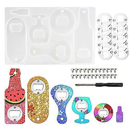 Resin Opener Accessory with 10 Pcs Steel Insert Part Bottle Mold Beer Silicone Casting DIY Epoxy Corkscrew Kit Set