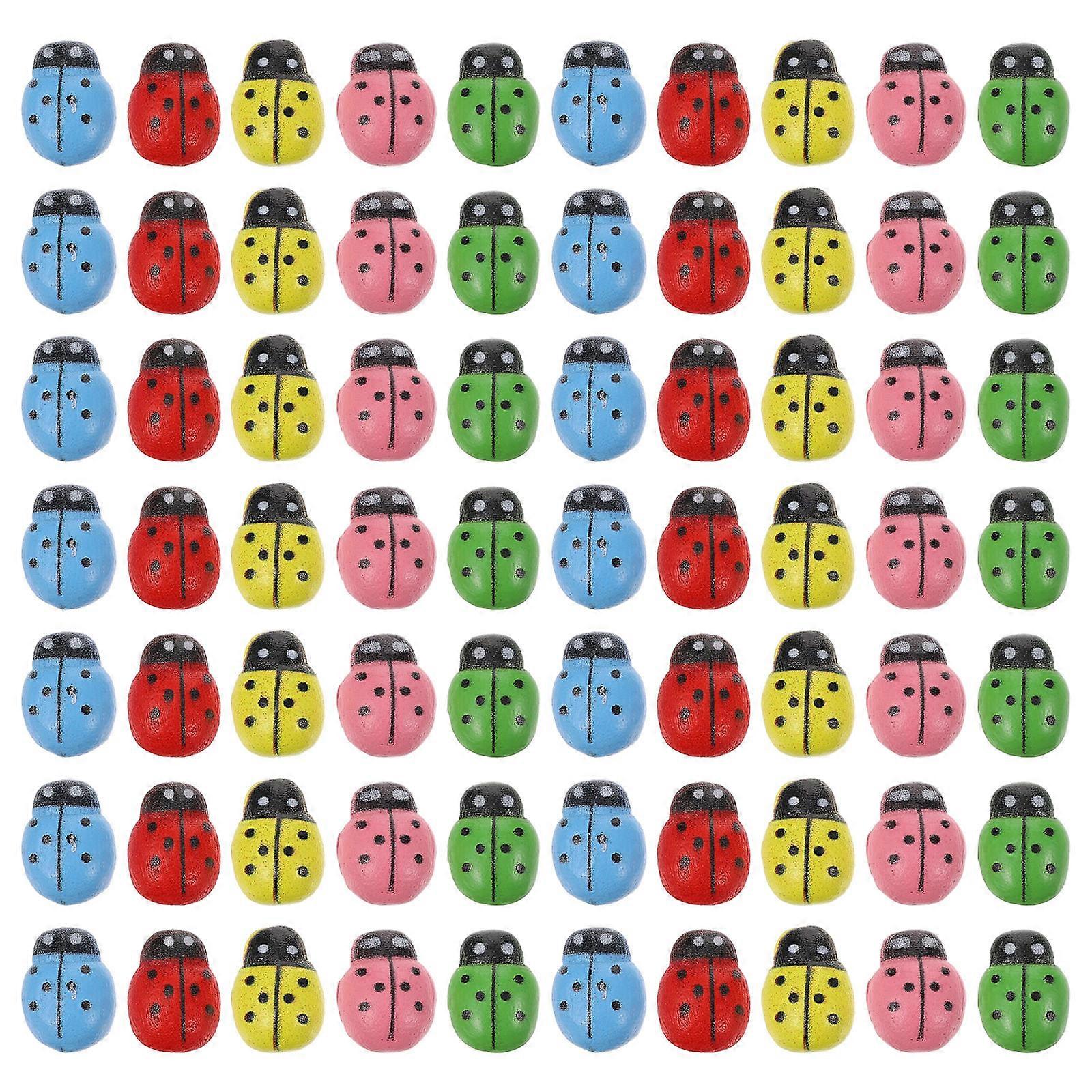Wooden Ladybug Stickers – 100pcs Self Adhesive Mini Insects for Crafting, Micro Landscape, Fairy Garden & DIY Decoration Projects