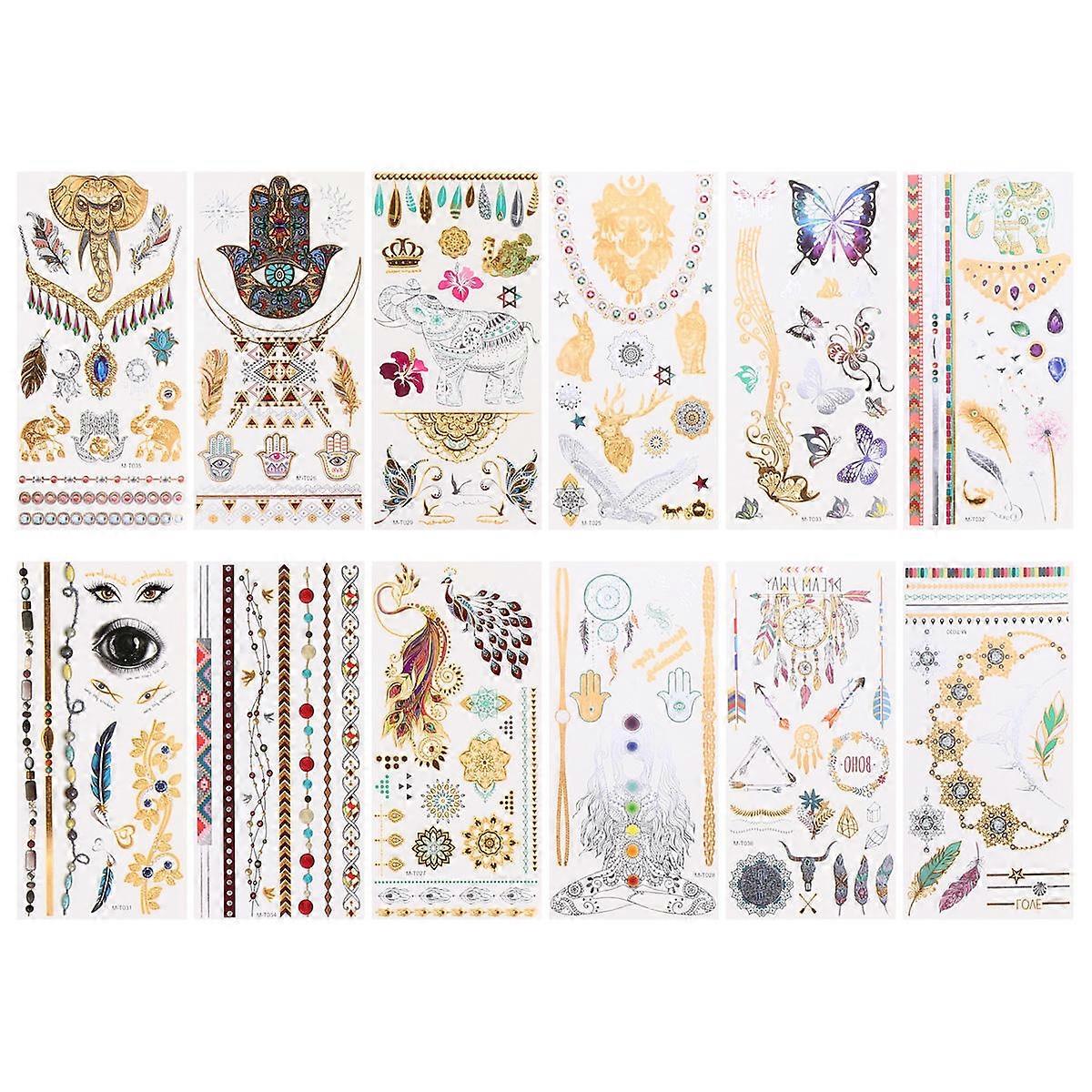 Face Stickers Jewels Long-lasting Temporary Gold Foil Body Art DIY Halloween Cosplay 12 Sheets Women Teens