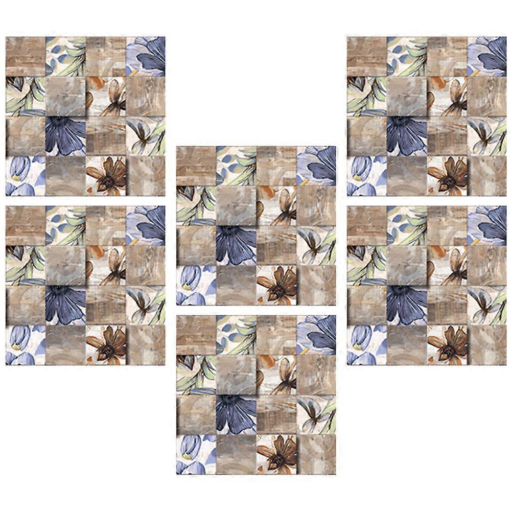 Waterproof Tile Stickers Flower Pattern Wall Decals for Bathroom 6Pcs