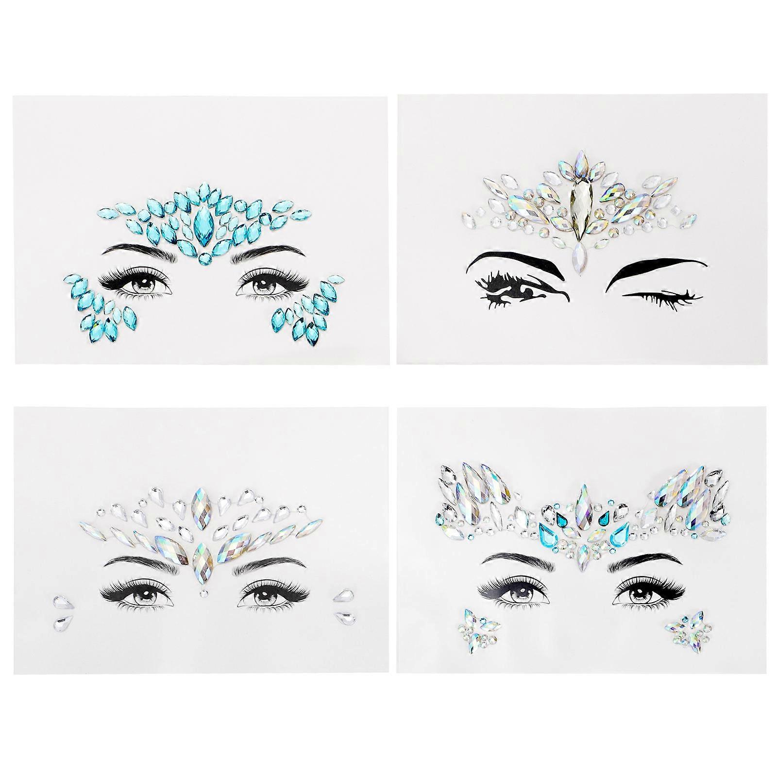 Face Stone Jewel Stickers Crystal Stickers Kids Party Makeup Accessory 4Pcs