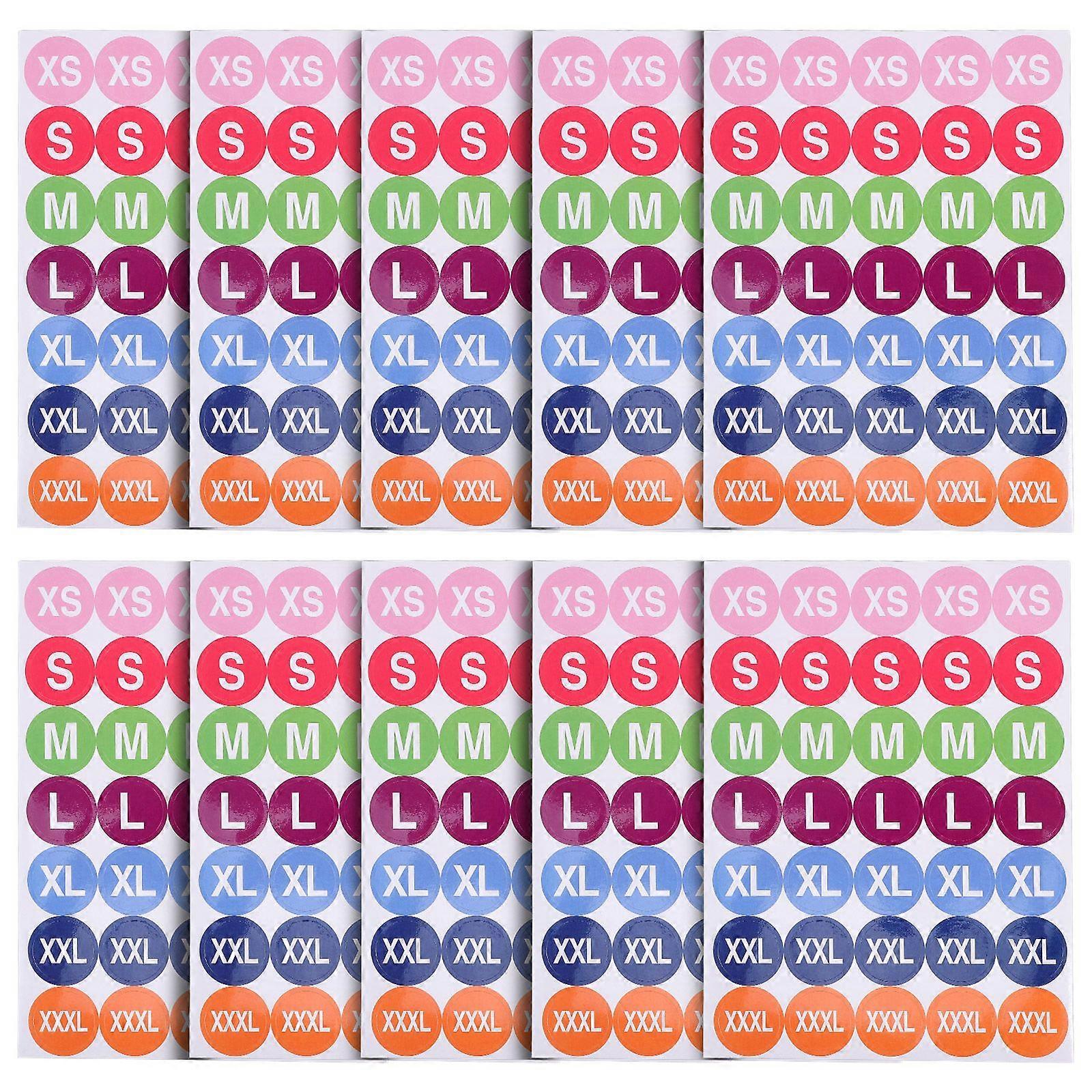 350pcs Clothing Size Stickers - Round Size Stickers Adhesive Clothing Size Sticker Labels for Clothing T Shirts Retail in 7 Sizes XS S M L XL XXL XXXL