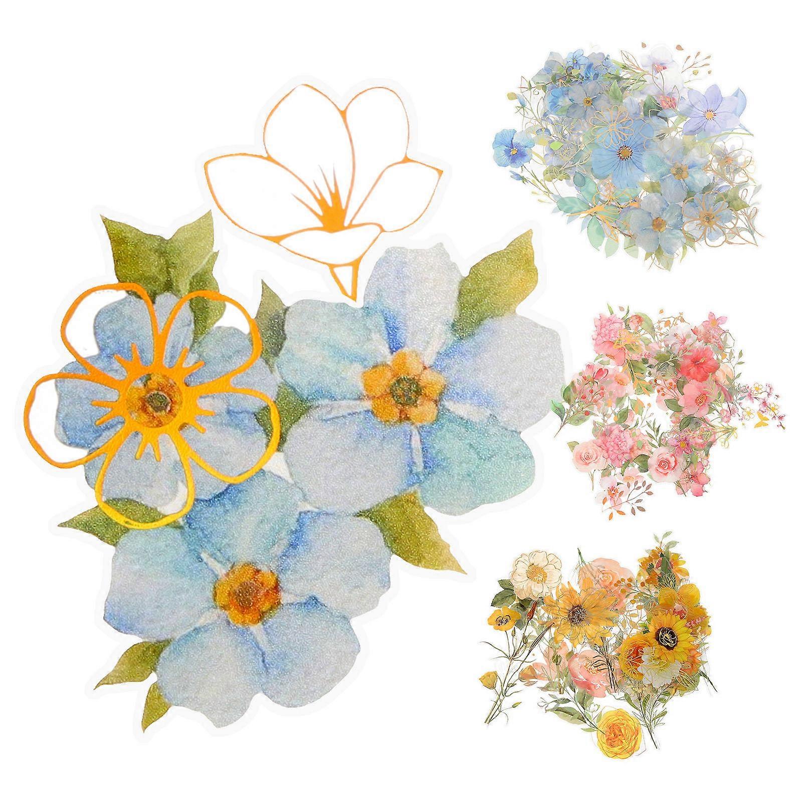 Seasonal Scrapbook Stickers 3 Sets Flower Plastic Stickers For Handmade Projects Assorted Color Natural Style Decoration 40 Pieces Per Set