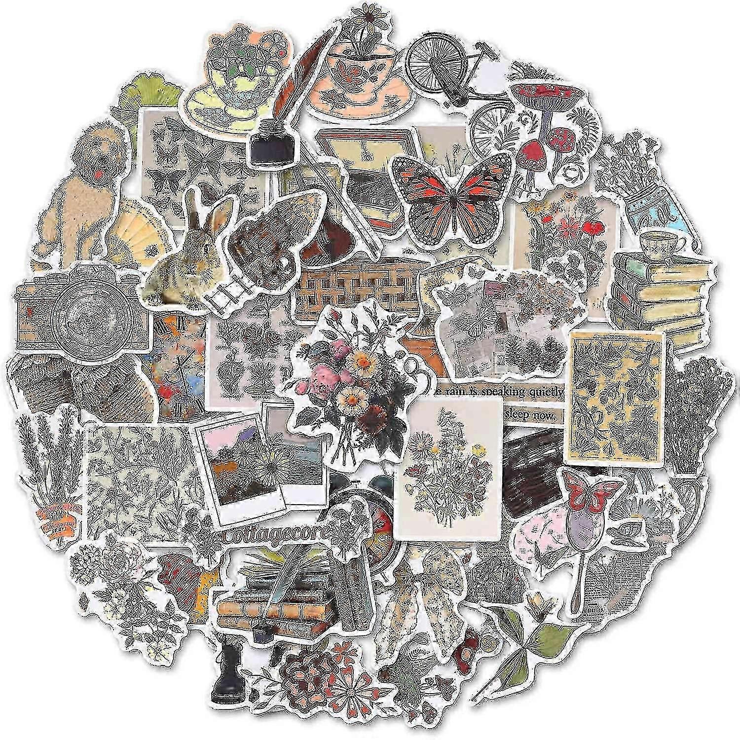 Vintage Stickers: 50 Scrapbook Decals for Diary & Planner, Waterproof Vinyl Long-Lasting Adhesive Labels