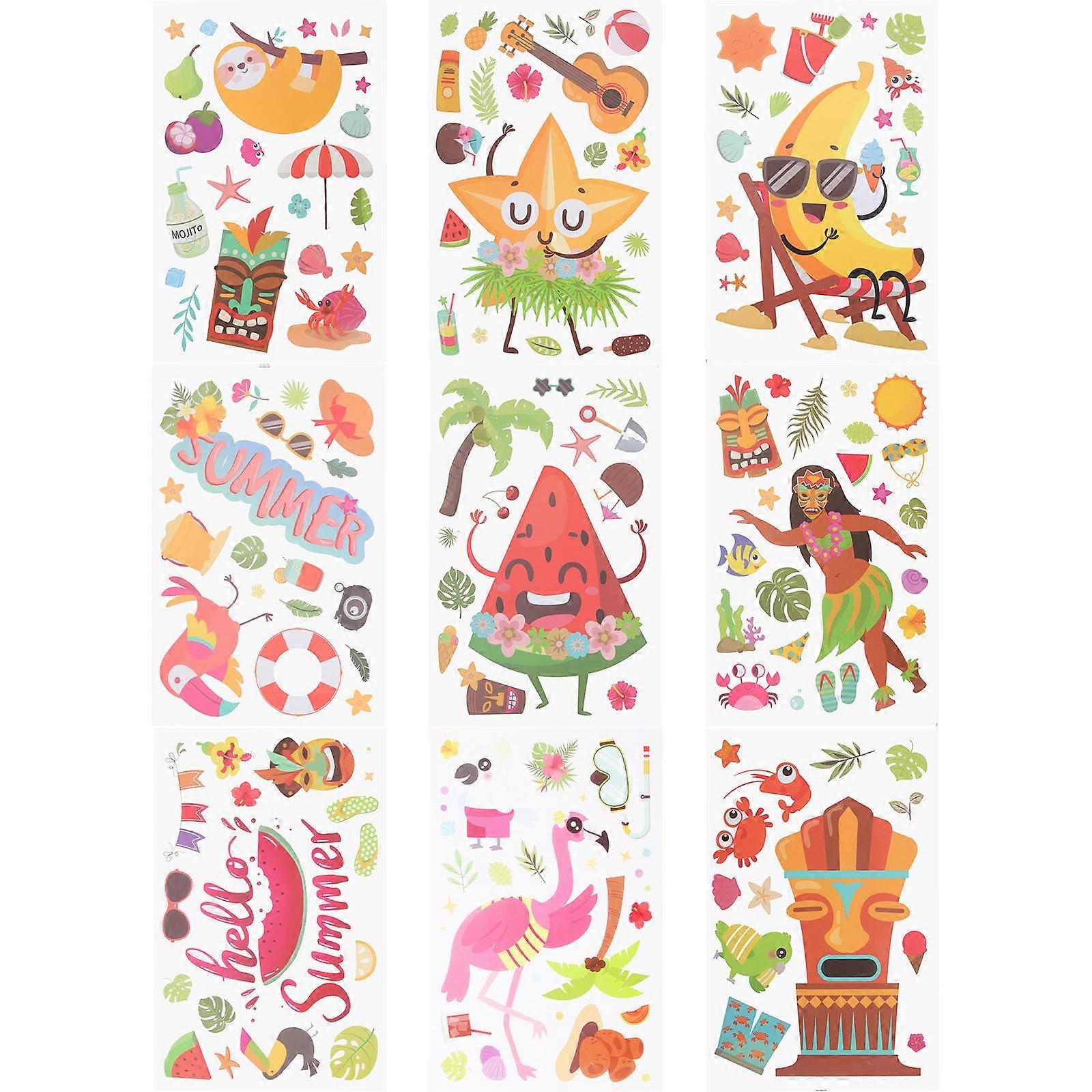 Delicate Window Stickers Decal Summer Theme Shop Window Decoration Assorted Color 9 Sheets