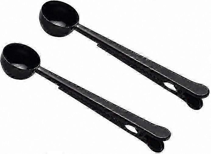 Made of food grade stainless steel. These 2-in-1 spoons are durable, sturdy, and built to last. Multi-purpose design ideal for coffee, tea, beans, protein powder, spices, and more. Features a spoon and clip combination that seals bags to help keep contents fresh. Approximately 7 inches long, with an extended handle that easily reaches the bottom of containers. Easy to clean. Capacity of 1 tablespoon, approximately 15 ml. Package includes 2 coffee scoops.