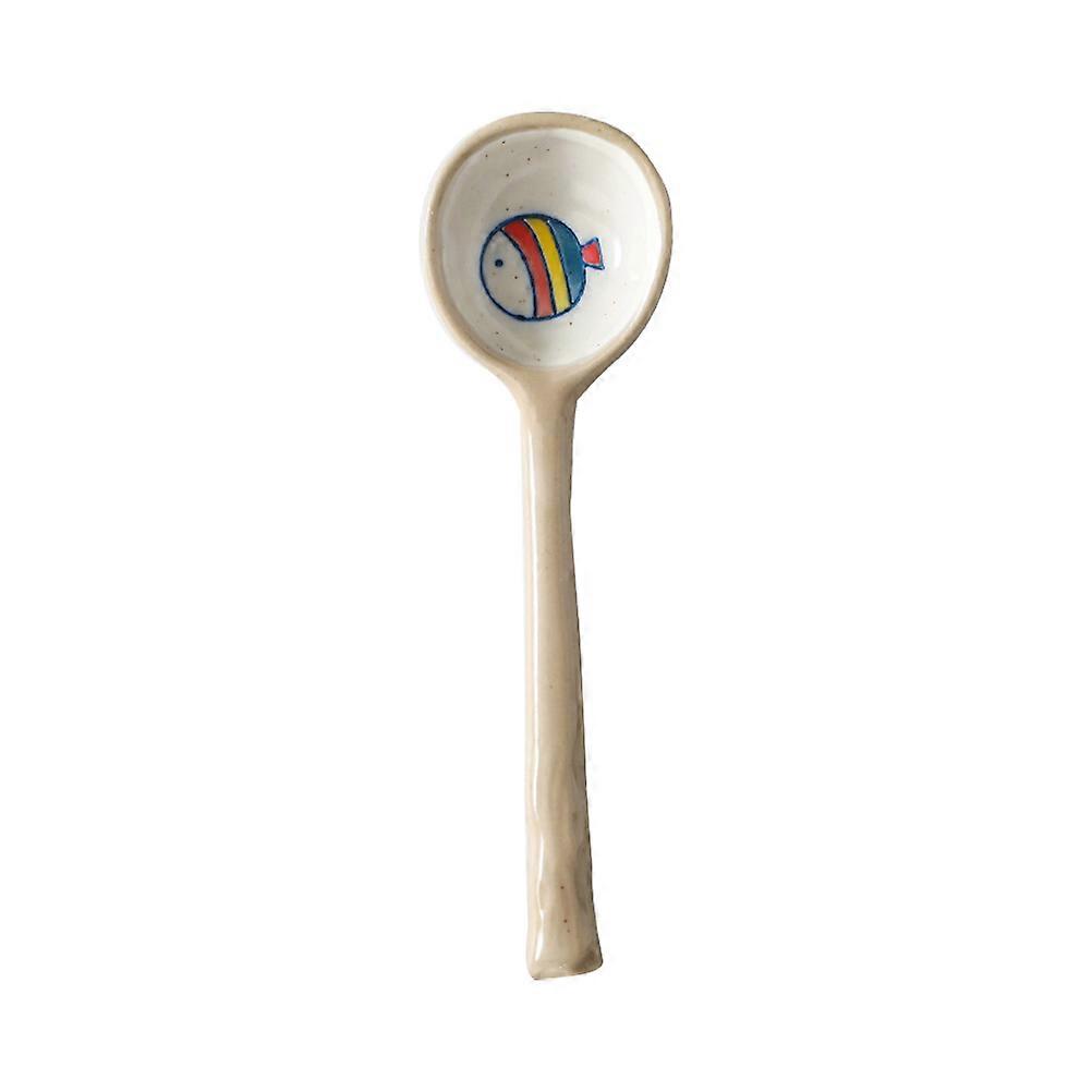 Kids' Ceramic Porridge Spoon with Ergonomic Long Handle, Cartoon Design, Portable Eating Spoon for Boys, Hand Painted Tableware for Soup, Salad,