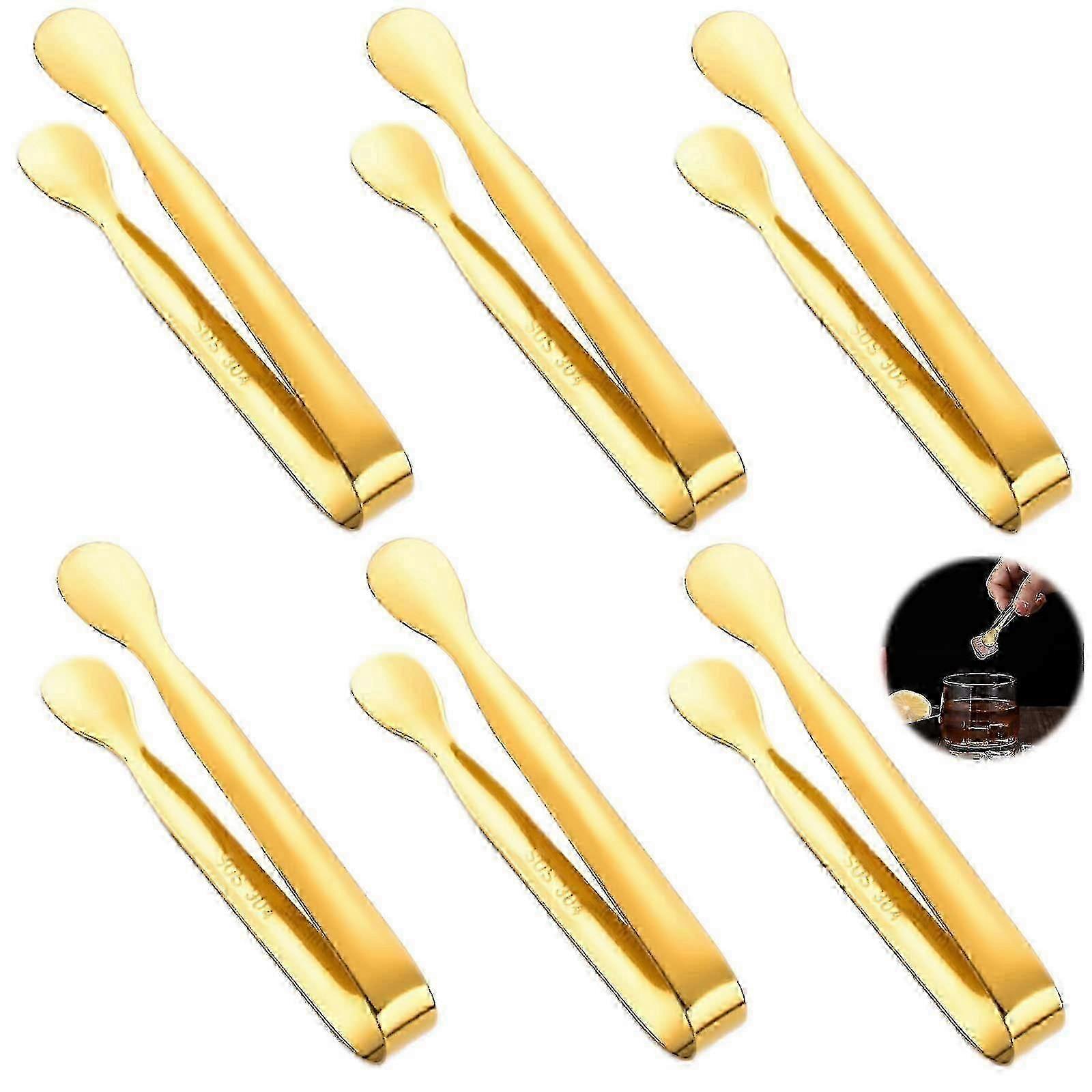 Stainless Steel Sugar Tongs, Gold Ice Cube Tongs, 6-Piece Serving Tongs for Wedding Party Bar Buffet