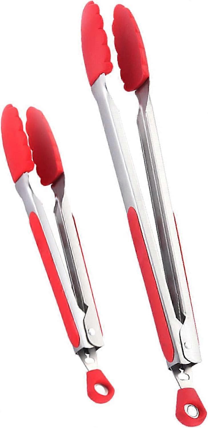 Kitchen Food Tongs,2pcs Stainless Steel Cooking Tongs with Silicone Tips,Silicone Tongs for Grilling, Serving, BBQ,Salad