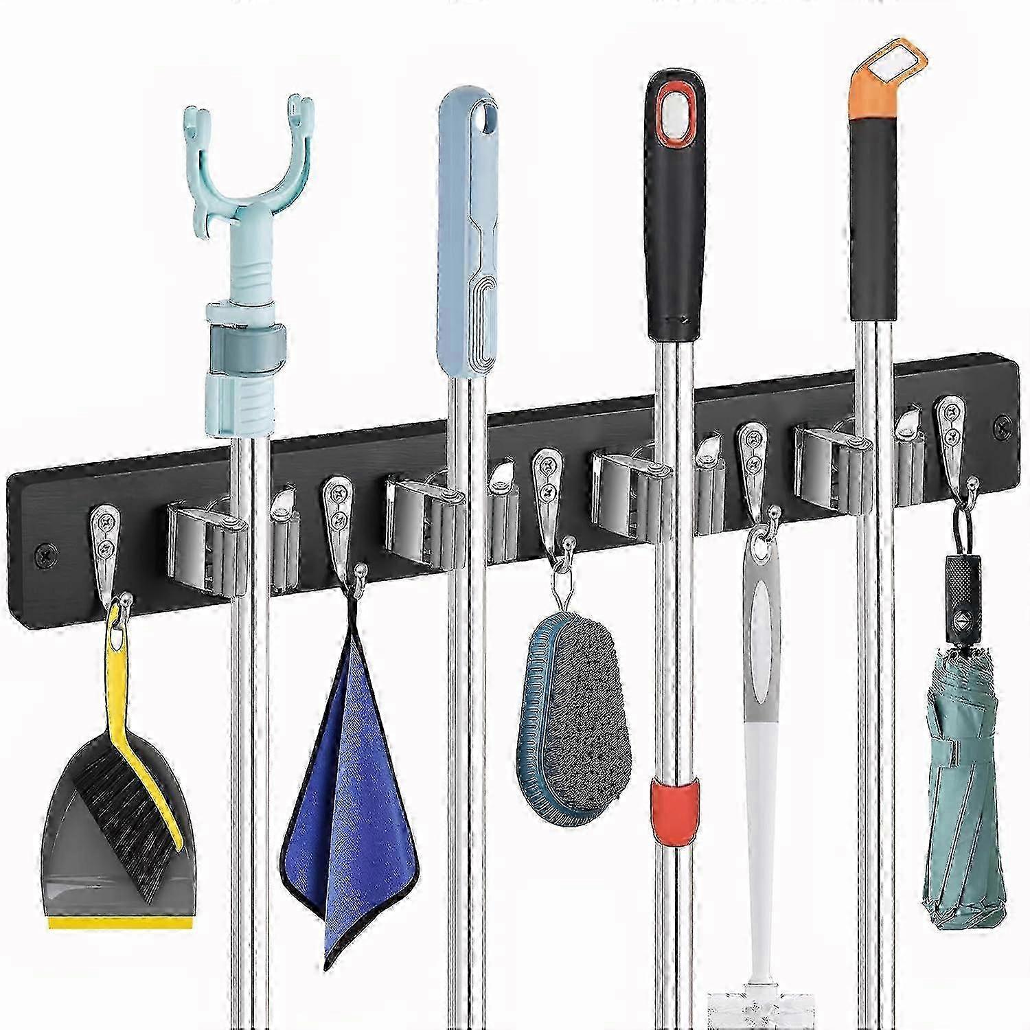 UNMATCHED - Robust Construction for Use Our mop and broom holder wall mount is built with , rust-resistant materials ensuring it stands the test of time. for both indoor and outdoor use, it securely holds even the heaviest tools without bending or breaking. This wall mount broom holder is designed for and reliability..EASY INSTALLATION - Quick and Hassle-Free Setup Installing this broom holder wall mount is a breeze! With a built-in level and comprehensive instructions, you'll have it up and running in minutes. All necessary hardware is included, so there's no need for extra trips to the store. Get your laundry room organization and storage sorted effortlessly!.SPACE-SAVING DESIGN - Maximize Your Storage Space Our broom organizer wall mount is designed to save space in your closet, garage, or laundry room. it efficiently holds your mops, brooms, and other tools, keeping them off the floor and neatly stored. Say goodbye to clutter and hello to tidy spaces with this broom closet organizer!.SECURE GRIP - Reliable and Non-Slip Hold Equipped with spring-loaded, double rubber gripped slots, our broom hanger wall mount ensures a firm hold on all your tools. Even wet mops and heavy-duty garden tools stay securely in place, preventing accidental falls and maintaining a neat appearance. This broom wall mount organizer is for laundry room organization and storage..VERSATILE GE - Ideal for Various Settings Whether you need to organize your kitchen decor and accessories, garden tools, or garage items, this versatile broom and mop holder wall mounted fits ly. Its rustic wood finish complements any decor style, from modern farmhouse decor to farmhouse kitchen decor, adding a touch of elegance to your home while keeping your tools within reach. Note: Due to the light and screen setting difference, the item's color may be slightly different from the pictures. Please allow slight dimension difference due to different manual measurement.