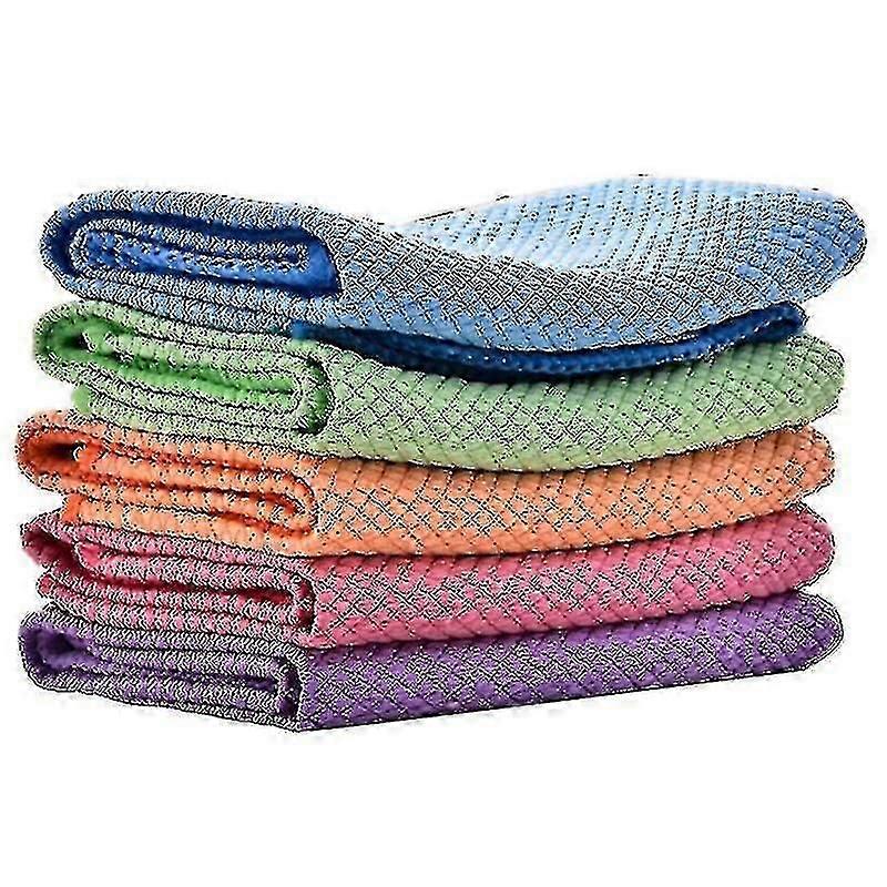 Fish Scale Wipes Super Absorbent Microfiber Polishing Cleaning Cloths Reusable Glass Wipe Wipes 30x40cm(5 Pcs, Red, Purple, Green, Blue, Orange)-Good