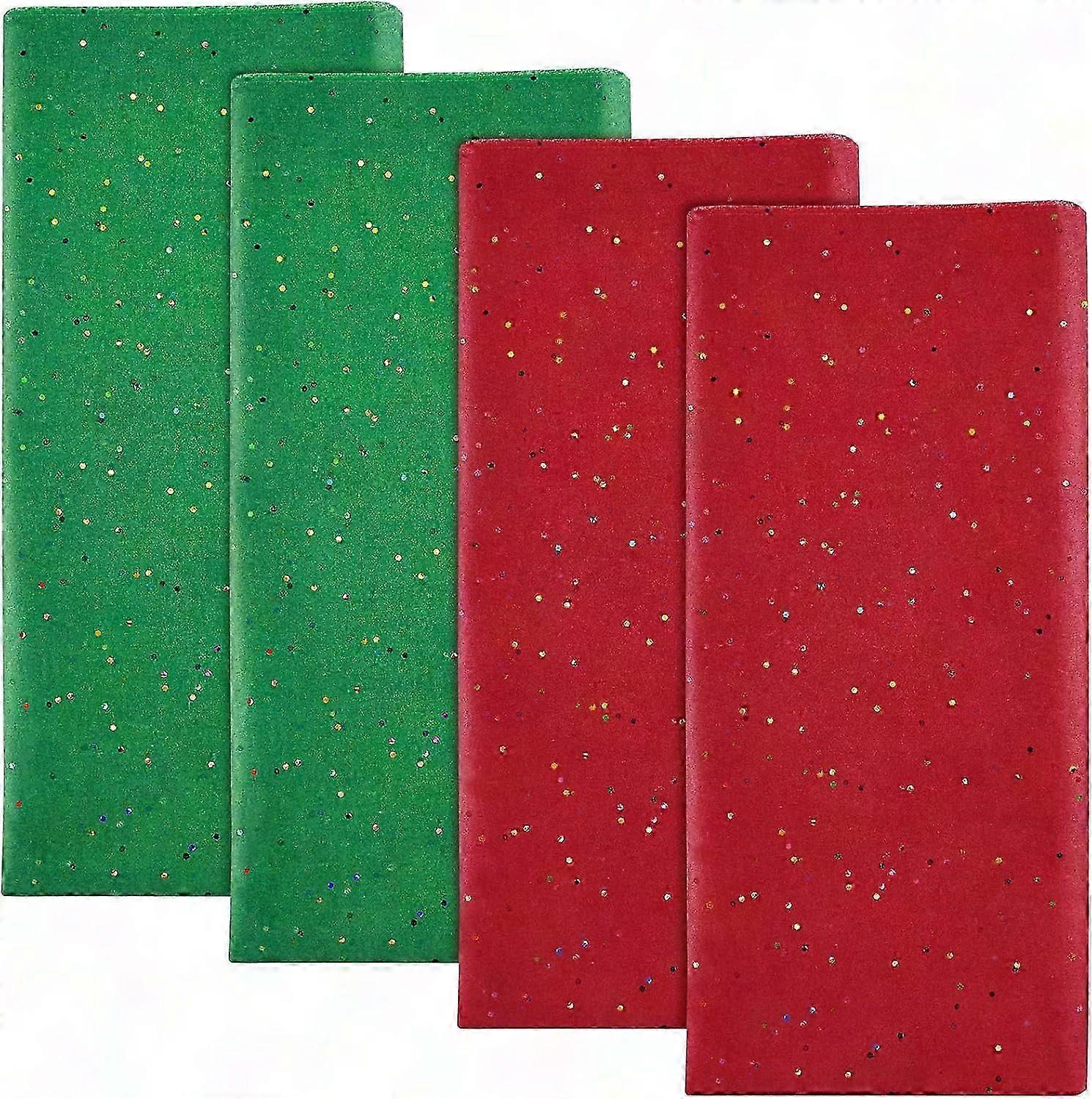 Glitter Tissue Paper for Christmas Gift Wrapping, 50x66cm Green & Red Craft Paper for Bouquet Packaging, 20 Sheets