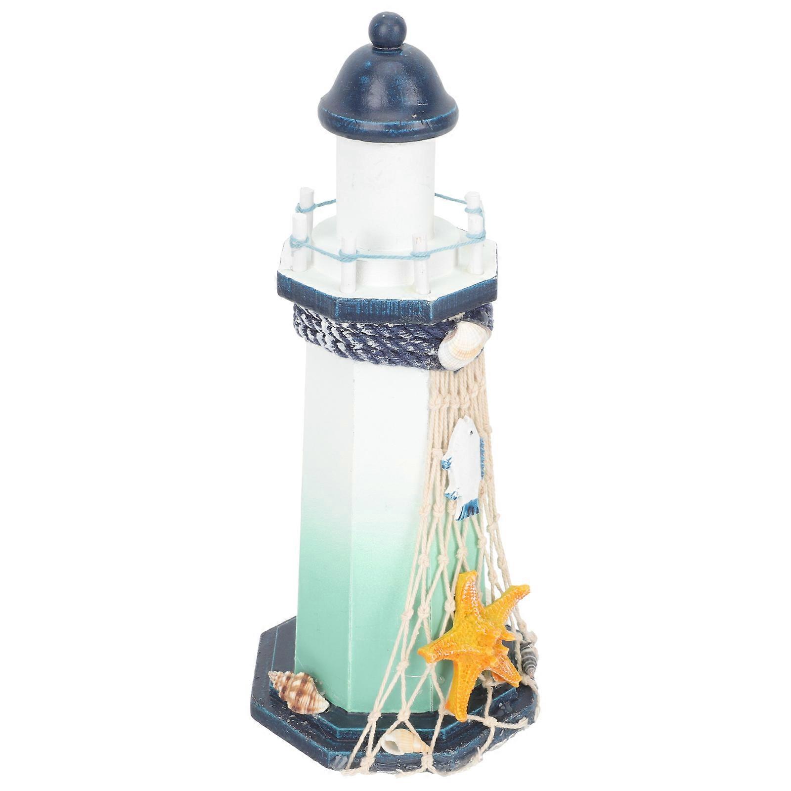 Wood Lighthouse for Home Mediterranean Style Seaside Decor Assorted Color Table Decor 9.8×4.3×4.3in 1Pack