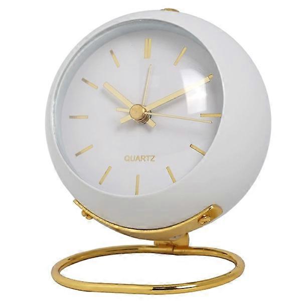 Battery-powered desk alarm clocks with light, analog clock retro silent non-ticking, loud bedside table clock White