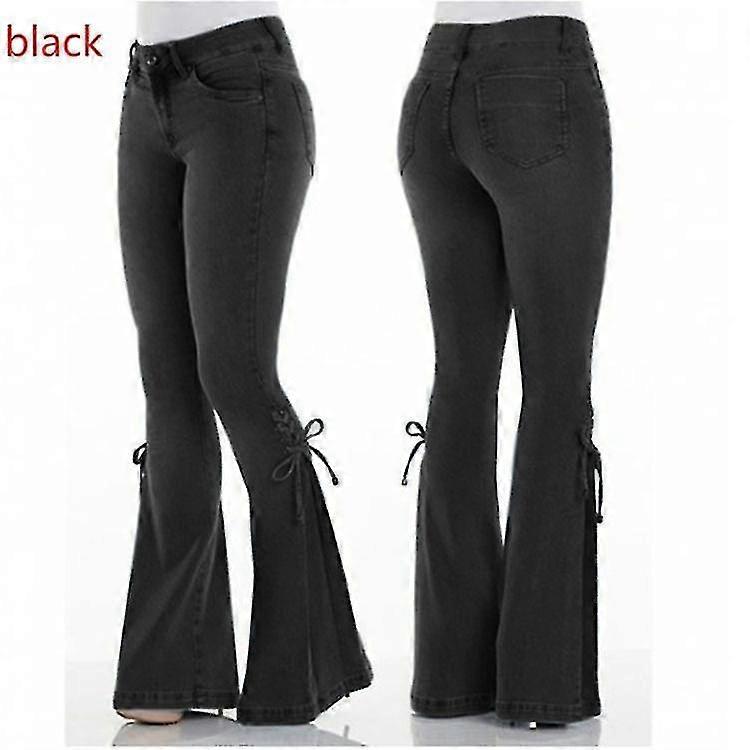 Mid Waist Stretch Flared Jeans Women's Denim Wide Leg Hip Lift Casual Korean Style Skinny Flared Pocket Trousers