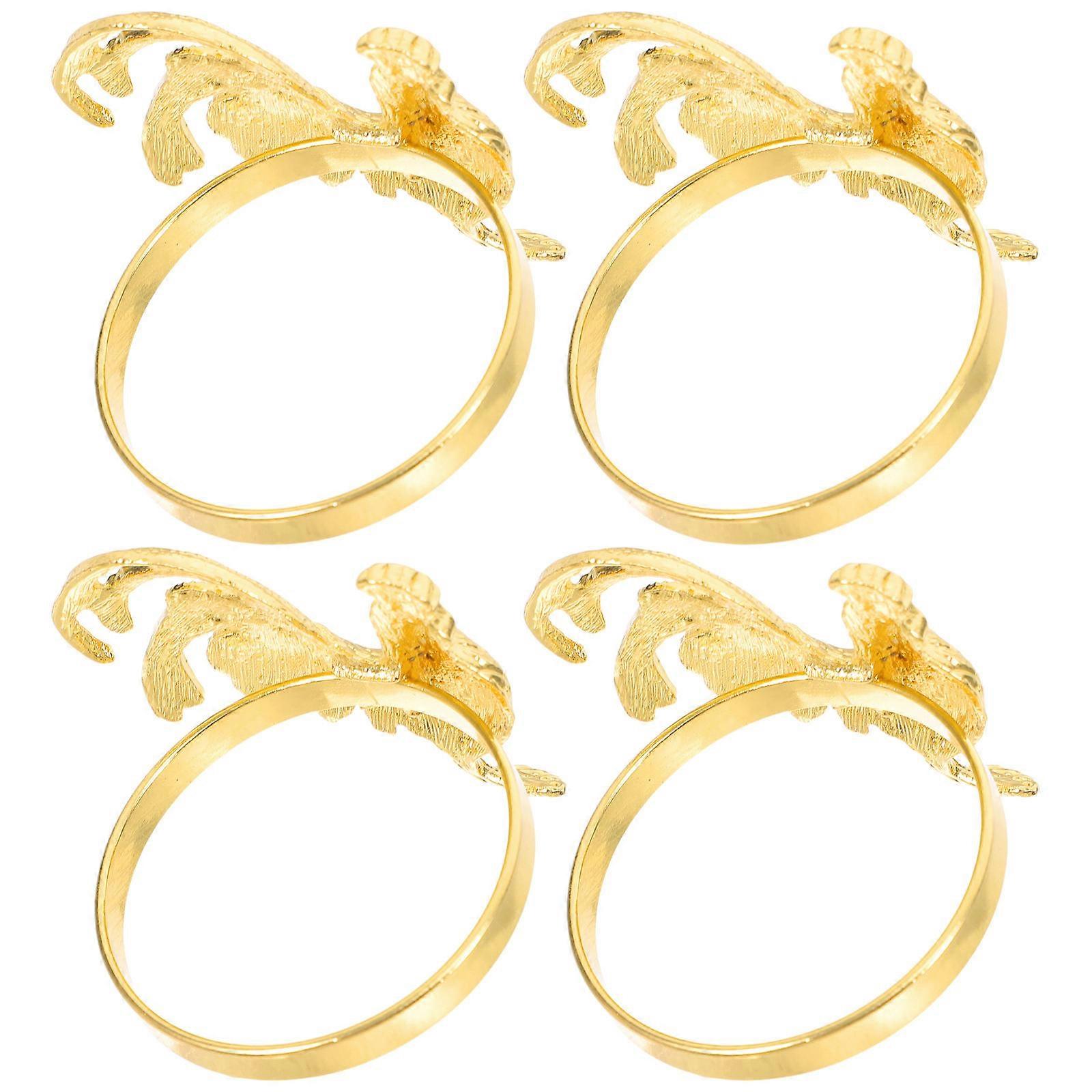 Reusable Napkin Buckle Hotel Restaurant Napkin Rings Metal Rooster Shape Golden Color Decorative 4Pcs