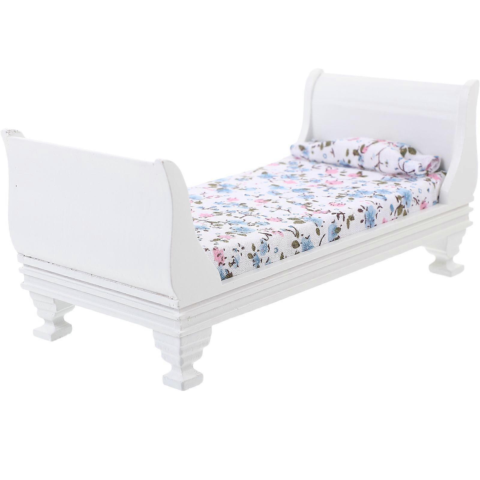 Mini House Miniature Bedroom Bed Miniature Wood Bed Mini Furnishing Adornment