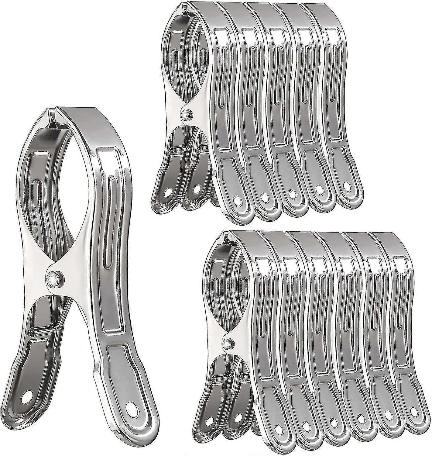 Beach Towel Clips 12 Packs Stainless Steel |windproof |jumbo Size Chair Clip Clamp Clothespin Clothes Pin Picture Hanger For Cruise,pool Cover,boat,lo