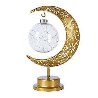 Tabletop Moon Lamp Iron Openwork Pattern LED Hanging Moon Shape Decorative Night Light Balls