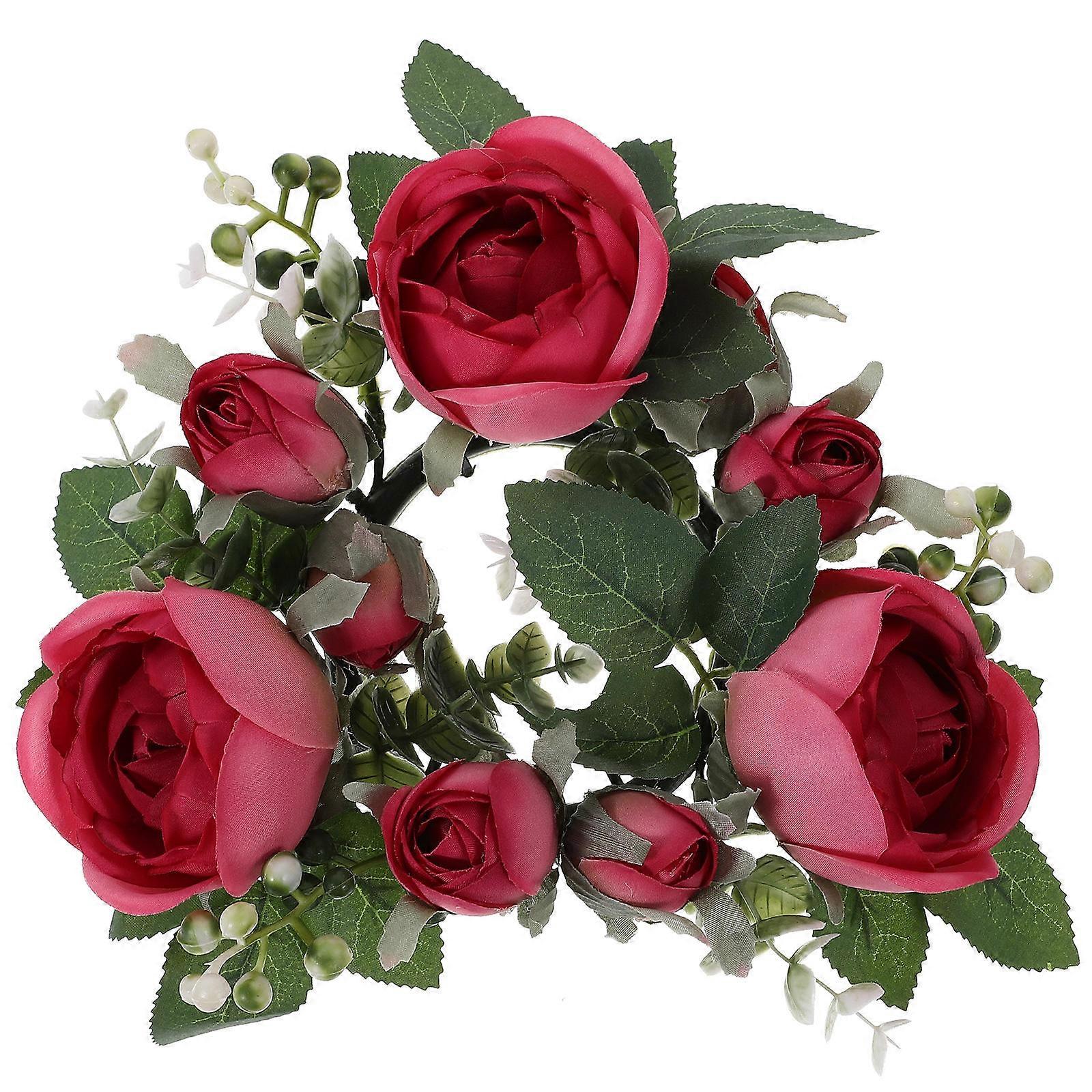 Tabletop Wreath Fake Rose Candle Ring Assorted Color Silk Flower Valentine's Day Rose Wreath 1Set