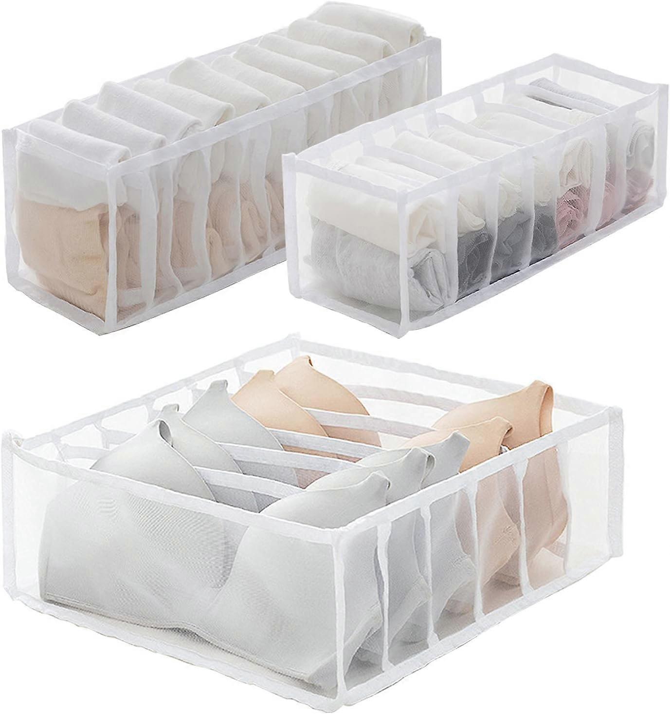 Underwear Drawer Organizer with 3 Compartments, Collapsible Closet Divider for Bras, Socks, Ties, and Scarves - High Capacity, White
