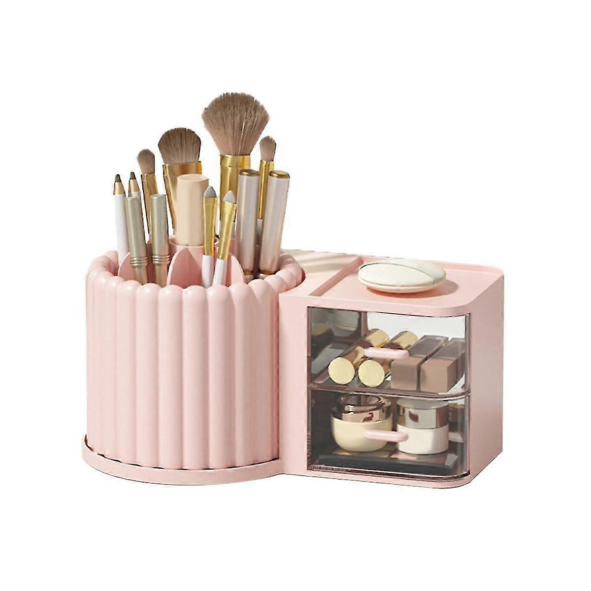 Makeup Brush Holder Organizer With 2 Drawers,360 Rotating Makeup Organizer Countertop,capacity Display Case Pink