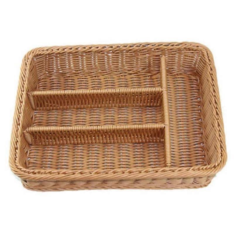 Kitchen Drawer Organizer Cutlery Storage Basket 4 Compartments Kitchen Forks Knifes Rattan Storage