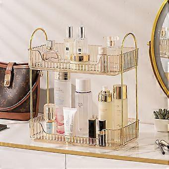 منظم عداد الحمام ، صينية الغرور 2 طبقة ، رف مضاد لخزانة الحمام متعدد الوظائف - ذهبي