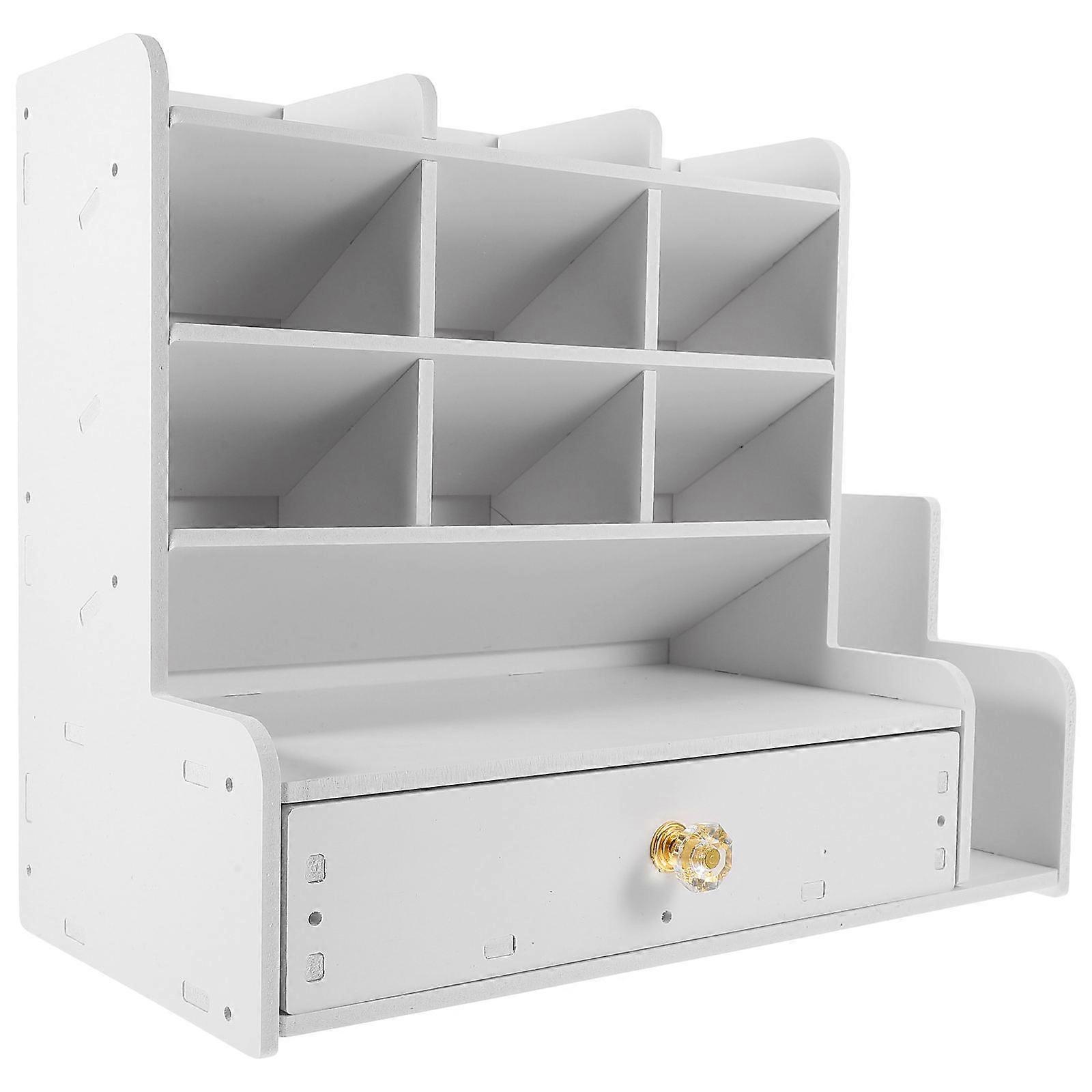Wood-Plastic Composite Desk Organizer with Multi-Tier Storage for Pens and Stationery at Home Use