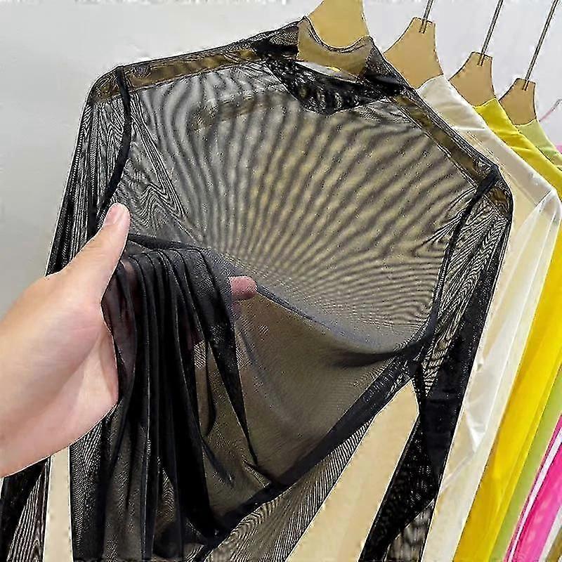 Perspective Transparent Mesh Bottom Shirt Women's Summer Long Sleeve Blouse Solid Gauze Sunscreen Clothing Ultra-thin Half High Collar Top