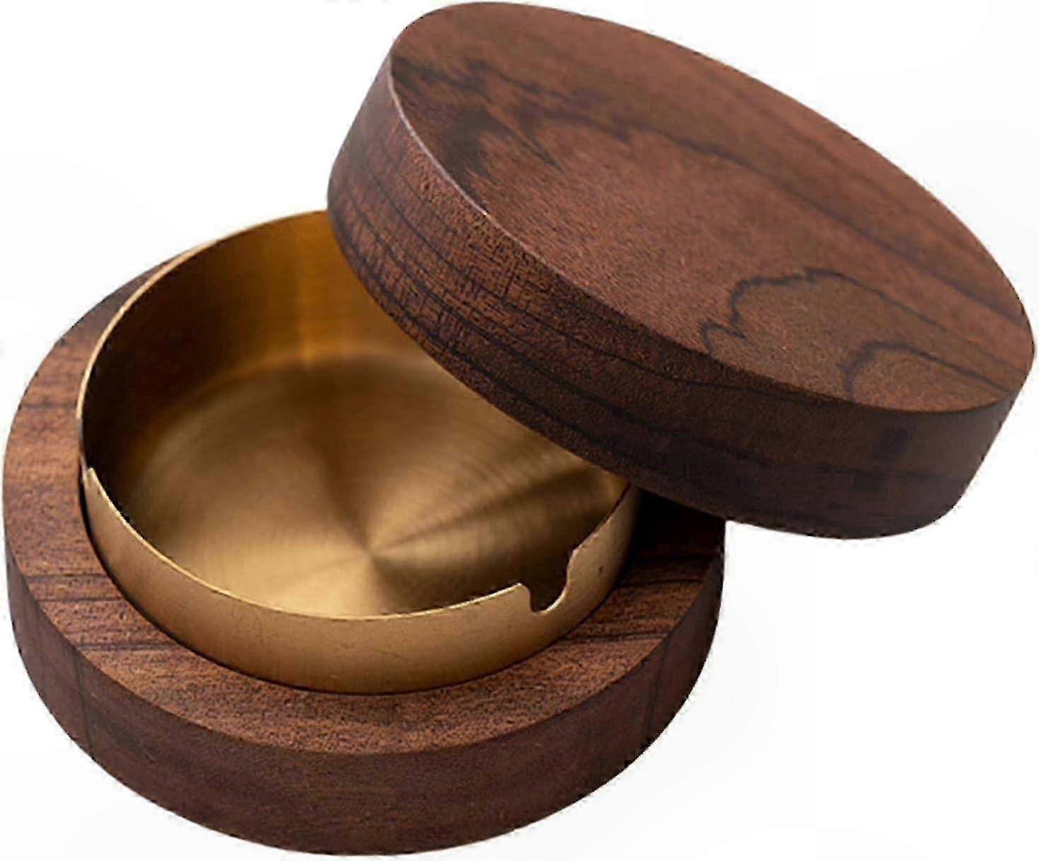 Windproof Wooden Ashtray with Lid, Stainless Steel Lined, Vintage Walnut Design for Indoor or Outdoor Use