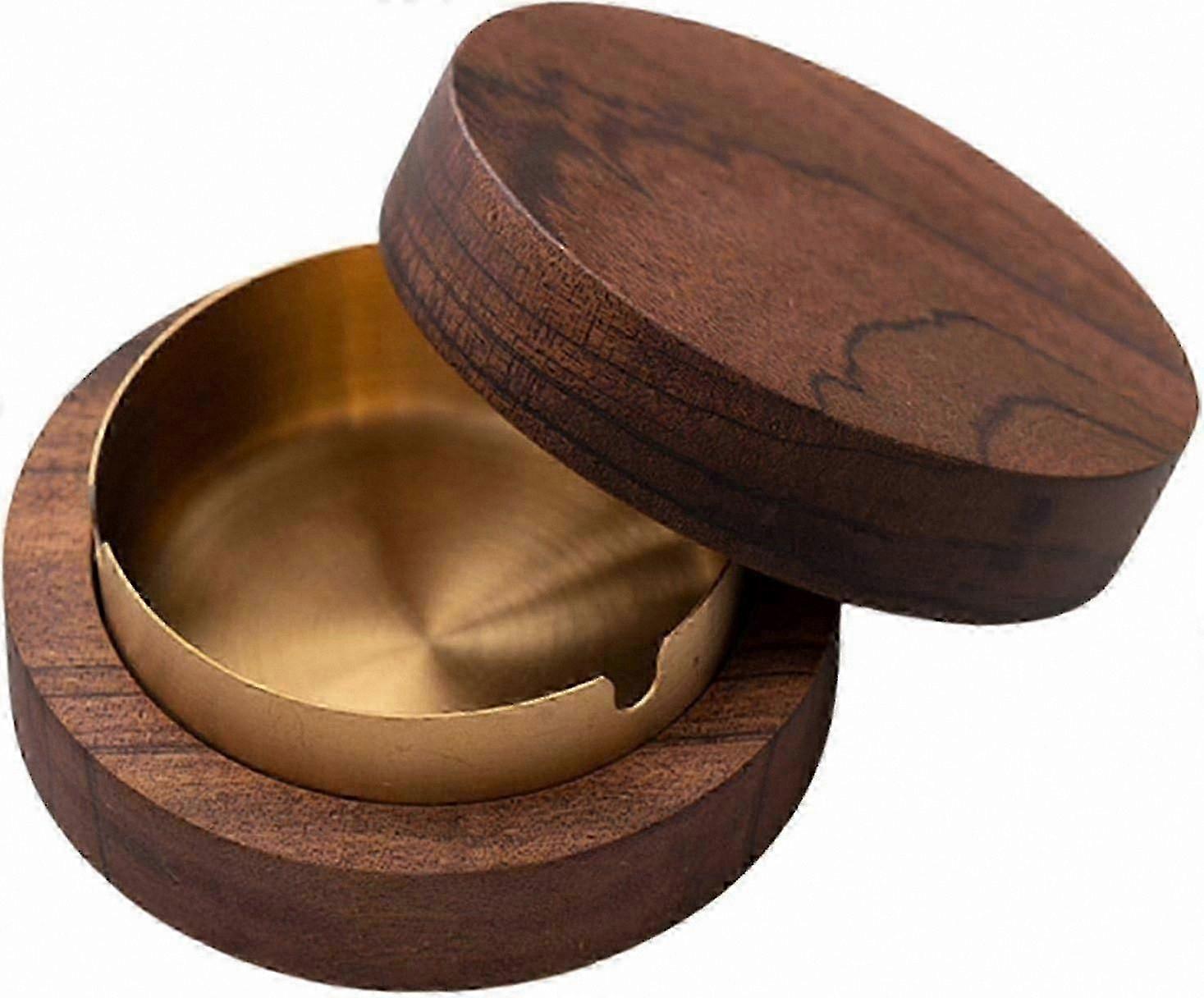 Walnut Wooden Ashtray with Lid - Stainless Steel Interior, Windproof Design for Indoor and Outdoor Use