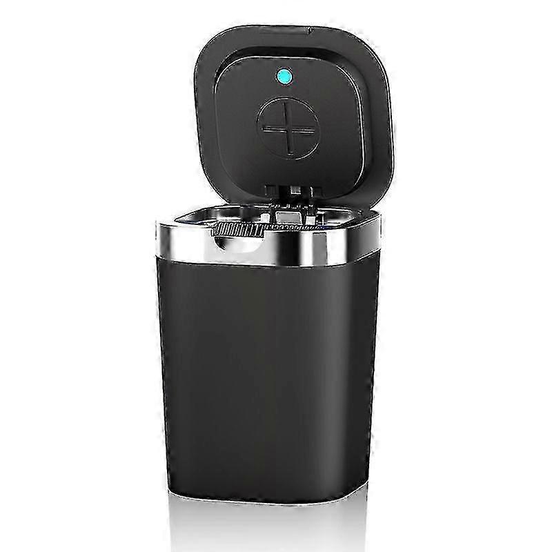 Car Ashtray, Portable Ceramic Ashtray for Vehicles, Mini Car Trash Can with Detachable Lid, LED Light, Windproof for Outdoor Travel, Home Use ( Black)