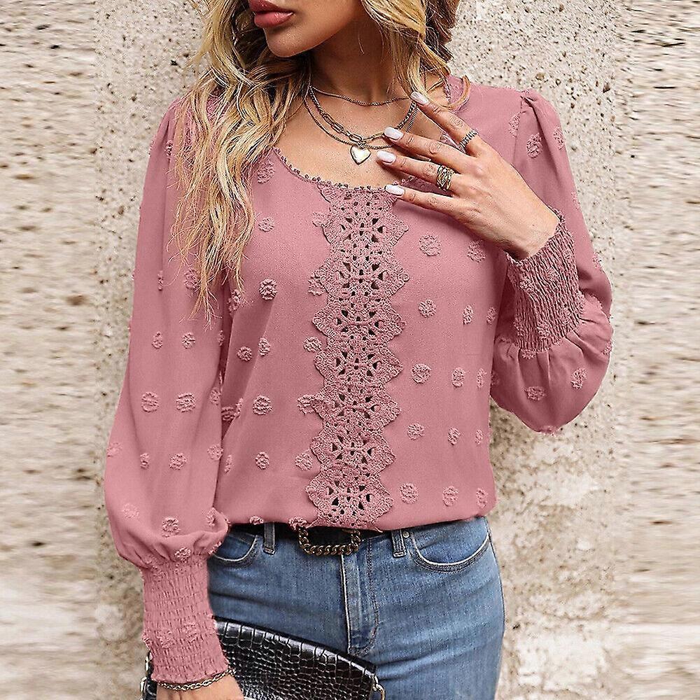 Puff Sleeve Tops Elegant Lace Hollow Pullover T-Shirt Blouse Autumn Fashion Tees