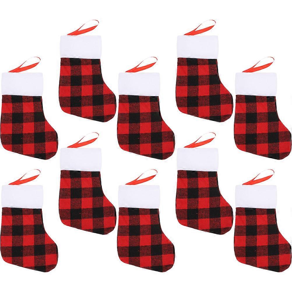 Plaid Stocking Decor Sock-Shaped Christmas Decorations For Kids And Families Assorted Color 10Pcs