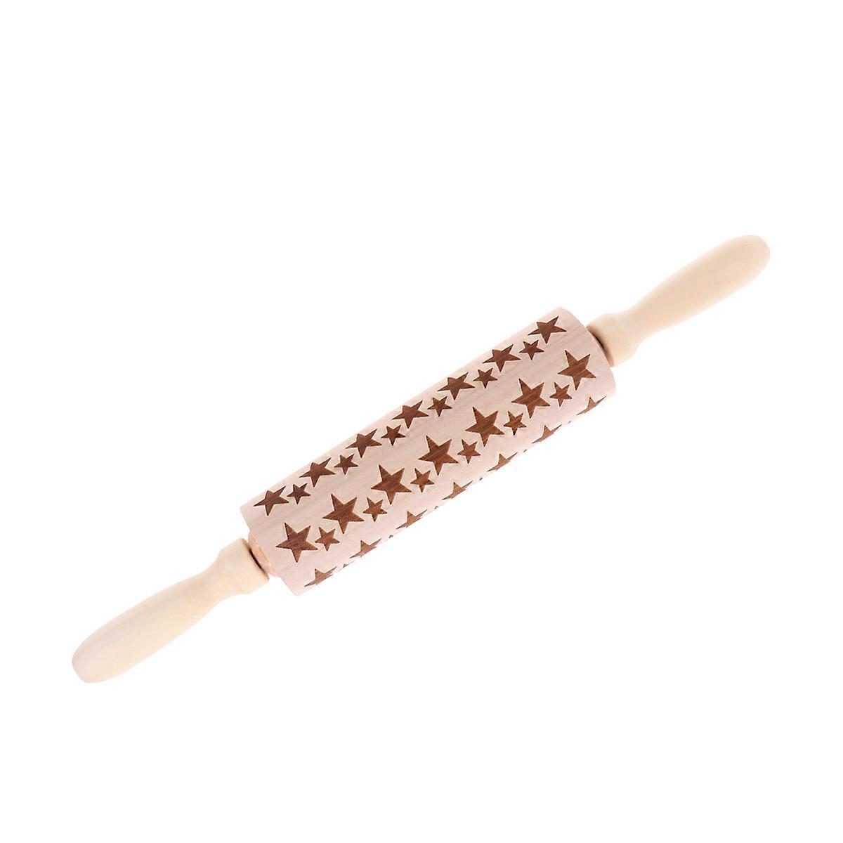 Patterned Rolling Pin for Design Home Kitchen Use 35*4.5cm Beige Boxwood 1Set