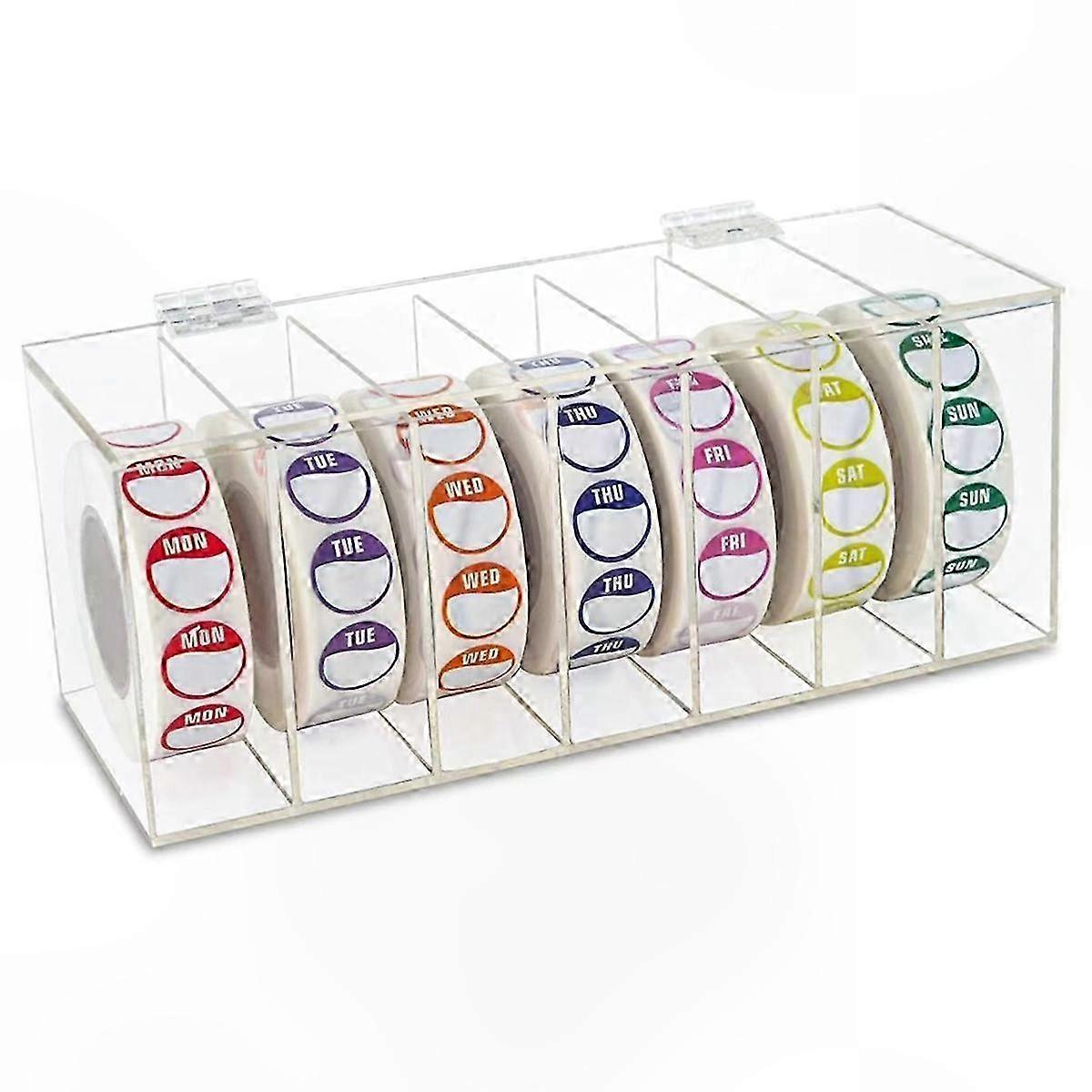 Acrylic Day of the Week Label Dispenser 7-Slot Wall Mount Sticker Roll