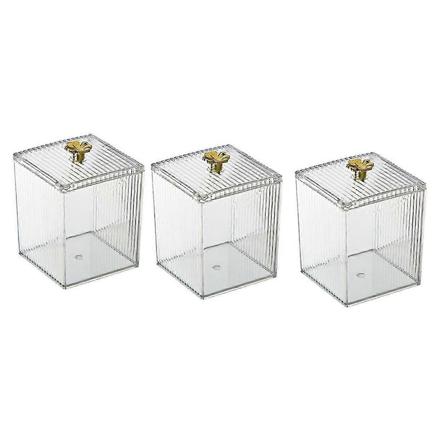 [Perfect Size Storage Containers] These Boxes are perfect organizer for small objects, quite easy to store and take out, such as , cotton ball, cotton swab, cotton rounds, floss picks, tampon, bath salts, hair tie band, makeup brush, beauty egg, face brush, crayons, candy, pens, clip and more small things. [Durable] The small jars is durable,looks like glass but WILL NOT SHATTER. [Size] Each storage box is 8.4 x 8.4 x 9.5cm. [Simple and Easy to Use] Each box has a removable lid and a wide mouth to make accessing bathroom necessities and accessories simple, easy to set the Q-Tips perfectly in the dispenser and easy to get them out. [High-quality Material & Dustproof] is dustproof and waterproof, and made of durable free shatter-resistant plastic. PLEASE DO NOT PUT IN DISHWASHER. Easily clean with soap and warm water.<br><br>size: 8.4 x 8.4 x 9.5cm Material: plastic colour: transparent<br><br>Package Contents: 3 x Cotton swab box<br><br>Only the above package content, other products are not included. Note: Light reflection and different displays may cause the color of the item in the picture a little different from the real thing. The measurement allowed error is +/- 1-3cm.