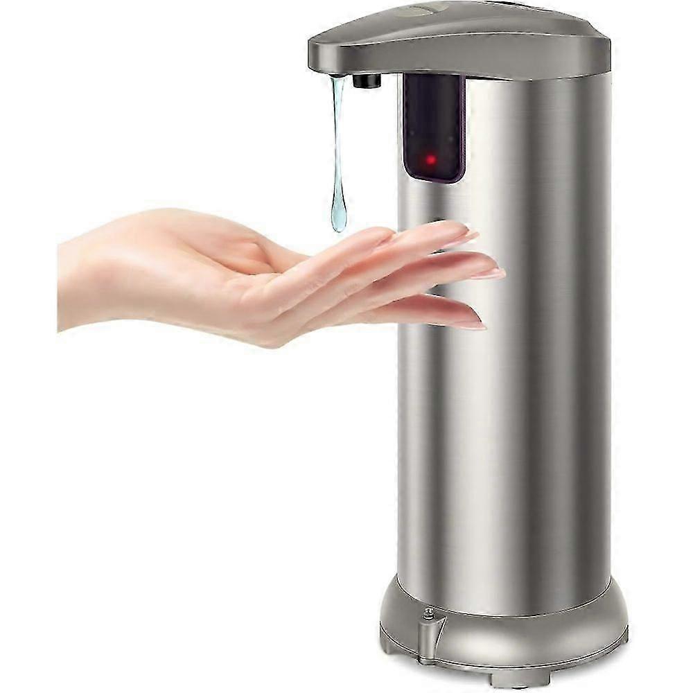 TouchFree Dispenser: Equipped with an infrared motion sensor, the soap dispenser will release hand lotion automatically when the sensor detects your hands. Perfect for your bathroom, kitchen, coffee bar, hotel.Adjustable Switches: With 280ml9.46oz capacity, and variable dispense control soap volume by adjusting +switch to control the liquid volume from 0.5 to 3ml. Compatible with most kinds of liquid, such as hand soap, hand lotion, and so on.Durable Material: This soap dispenser is made of 304 fingerprintresistant stainless steel, and enhanced motor power offer more stable quantity of produced liquid. Powered by 4 AAA batteries (Not included), one replacement can be used for about 3 months.Waterproof Base: Designed with a waterproof base and rubber seals to prevent the battery compartment from getting soaked in water which causes corrosion and the dispenser to fail. In addition, there is no screw for the base, easy to separate it.Adjustable capacity: The soap dispenser has a capacity of 280ml 9.5oz. The adjustable dispensing control soap volume controls the liquid volume from 0.5 to 3 ml by adjusting the +switch.