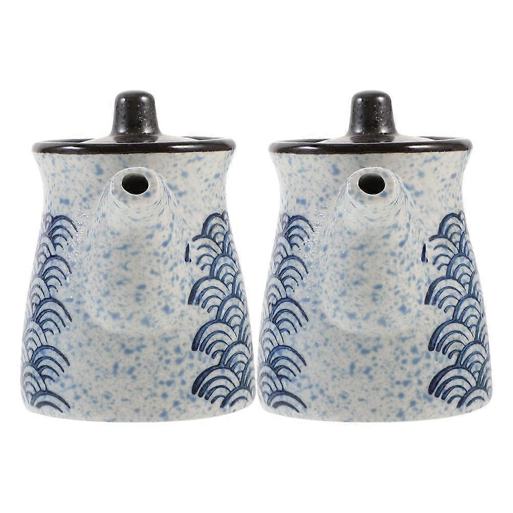Japanese Style Ceramic Oil Pot Dispenser For Kitchens Tight Seal 3.73X3.54X3.14in Easy Cleaning 2Pcs