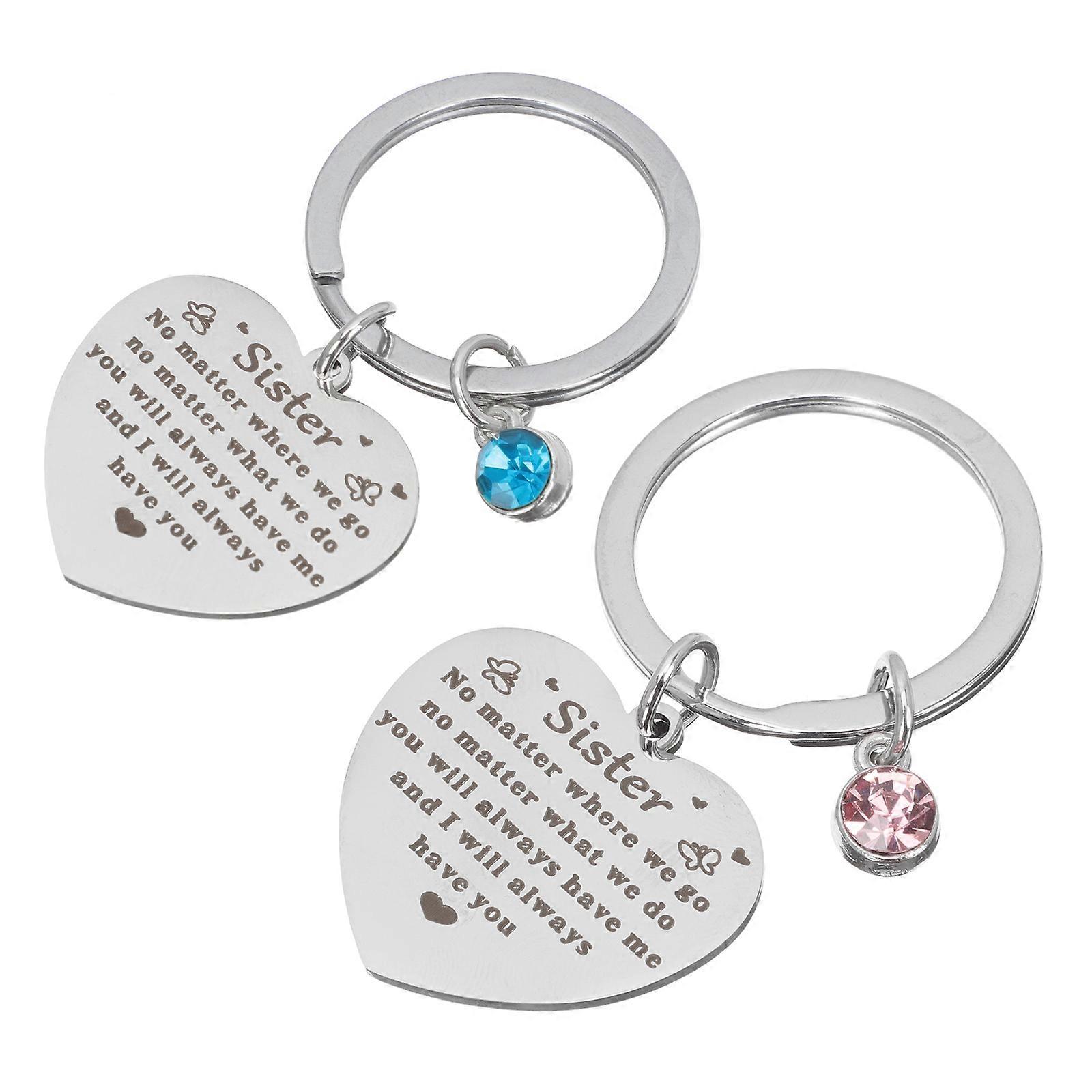 Sister Theme Love Heart Letter Carved Stainless Steel Keychains 2Pcs