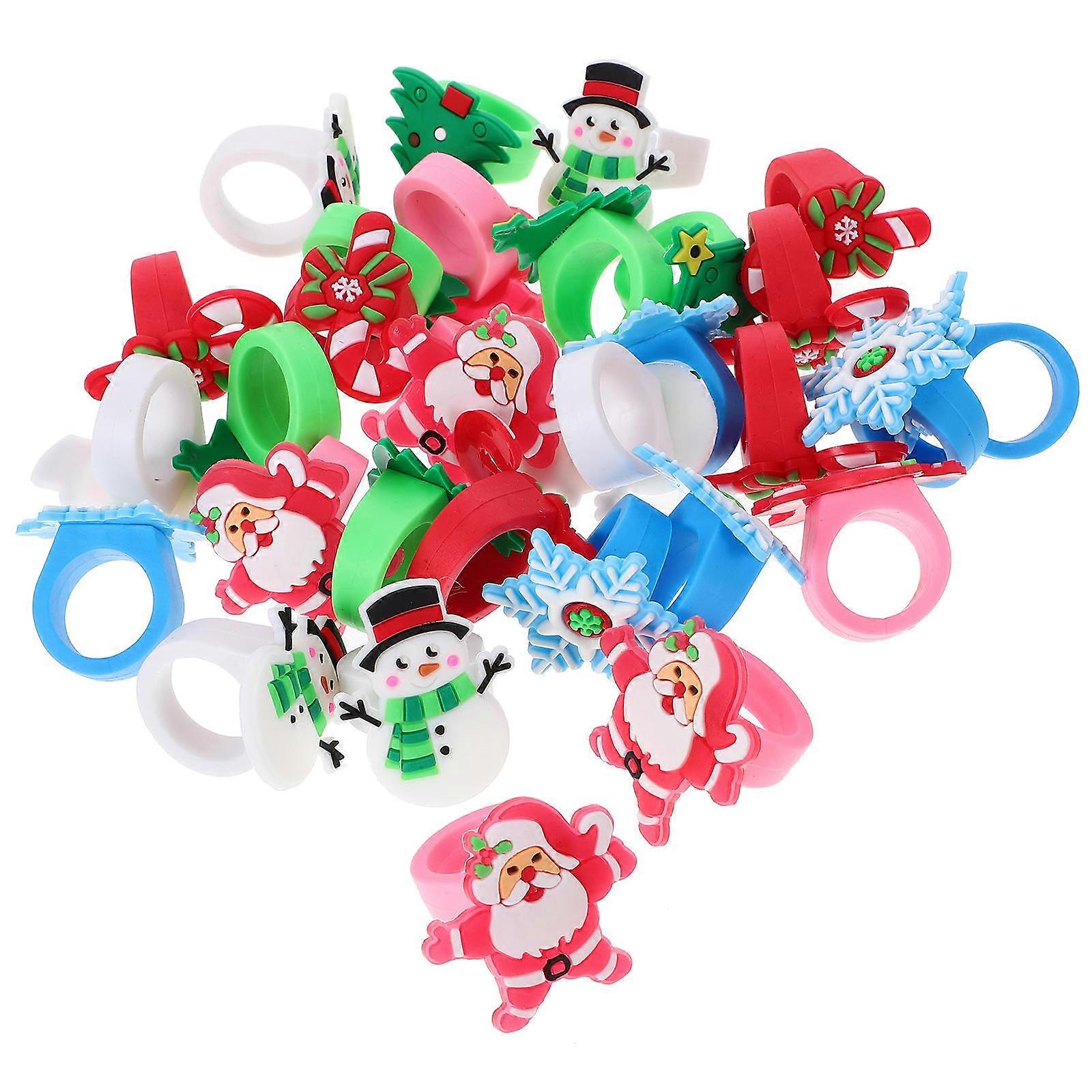 Christmas Theme Plastic Finger Rings 30Pcs For Kids Christmas Party Supplies Assorted Color Circular Fun