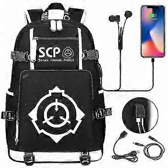 Scp Foundation Black Cartoon Backpack Bookbag Usb Laptop Shoulder Bag For Teenage Kids - Travel Bagpack And School Bags